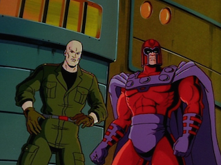 Wolverine and Shard, following Xavier’s plan, have been on a stakeout near the warehouse just in case Psylocke showed up. Psylocke and Archangel start going at it (fighting! I mean fighting!), with Psylocke accusing Archangel of being a wealthy assimilationist and Archangel accusing her of being a common thief. Before they can finish the argument, Sabretooth rips through the warehouse doors, followed by Mystique, who is followed by Wolverine, Shard, and—surprise!—Magneto. So there are seven powerful mutants duking it out over the course of a few minutes. The whole sequence is maybe a little too cute and quippy, but Jennifer Dale’s sardonic performance as Mystique stands out as especially fun.